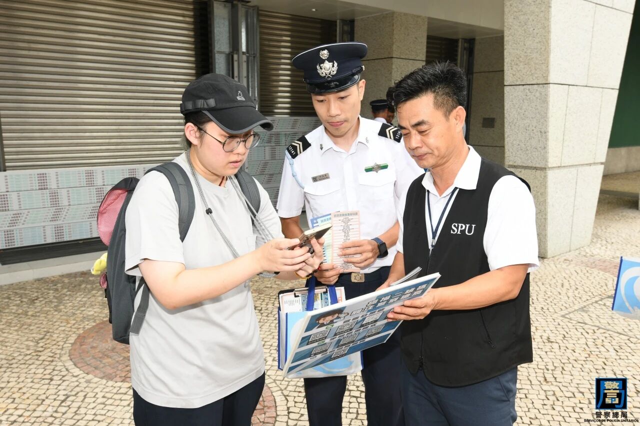 9月15日警察總局聯同澳門海關前往媽閣附近一帶進行民防宣傳活動