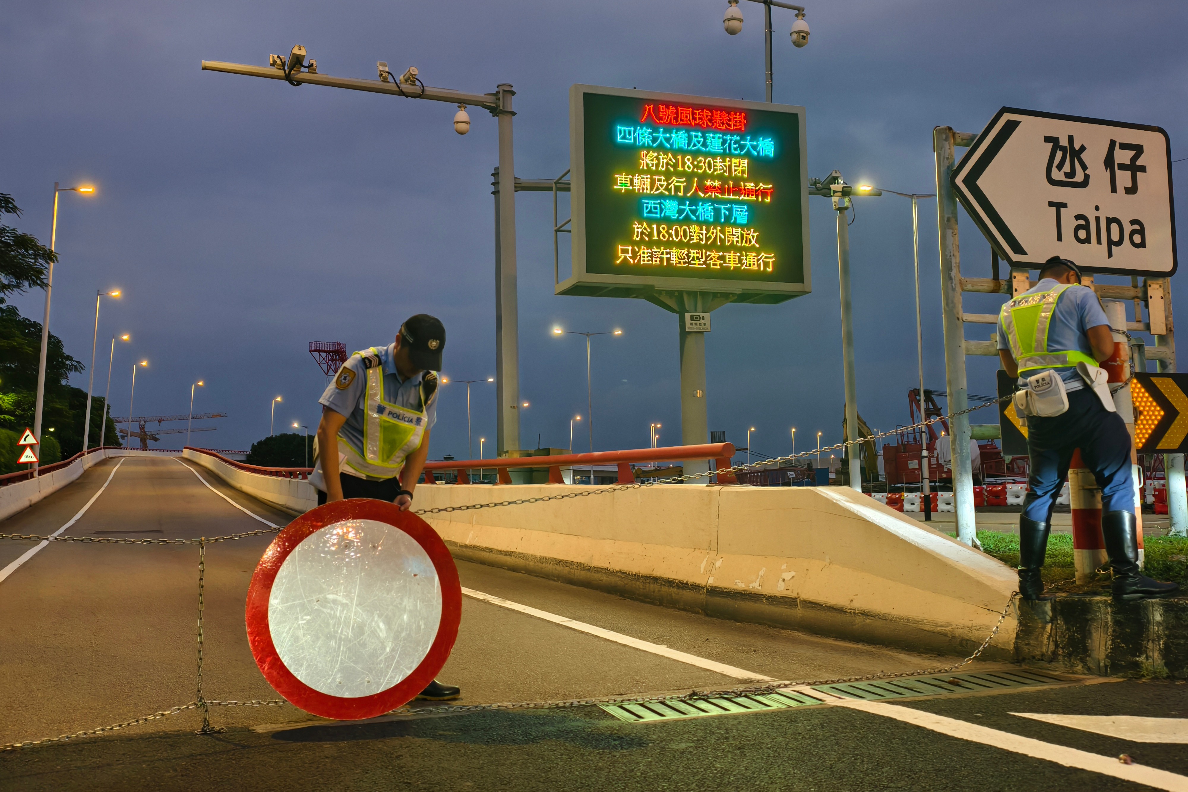 治安警察局人員執行封橋工作,並於現場維持交通秩序