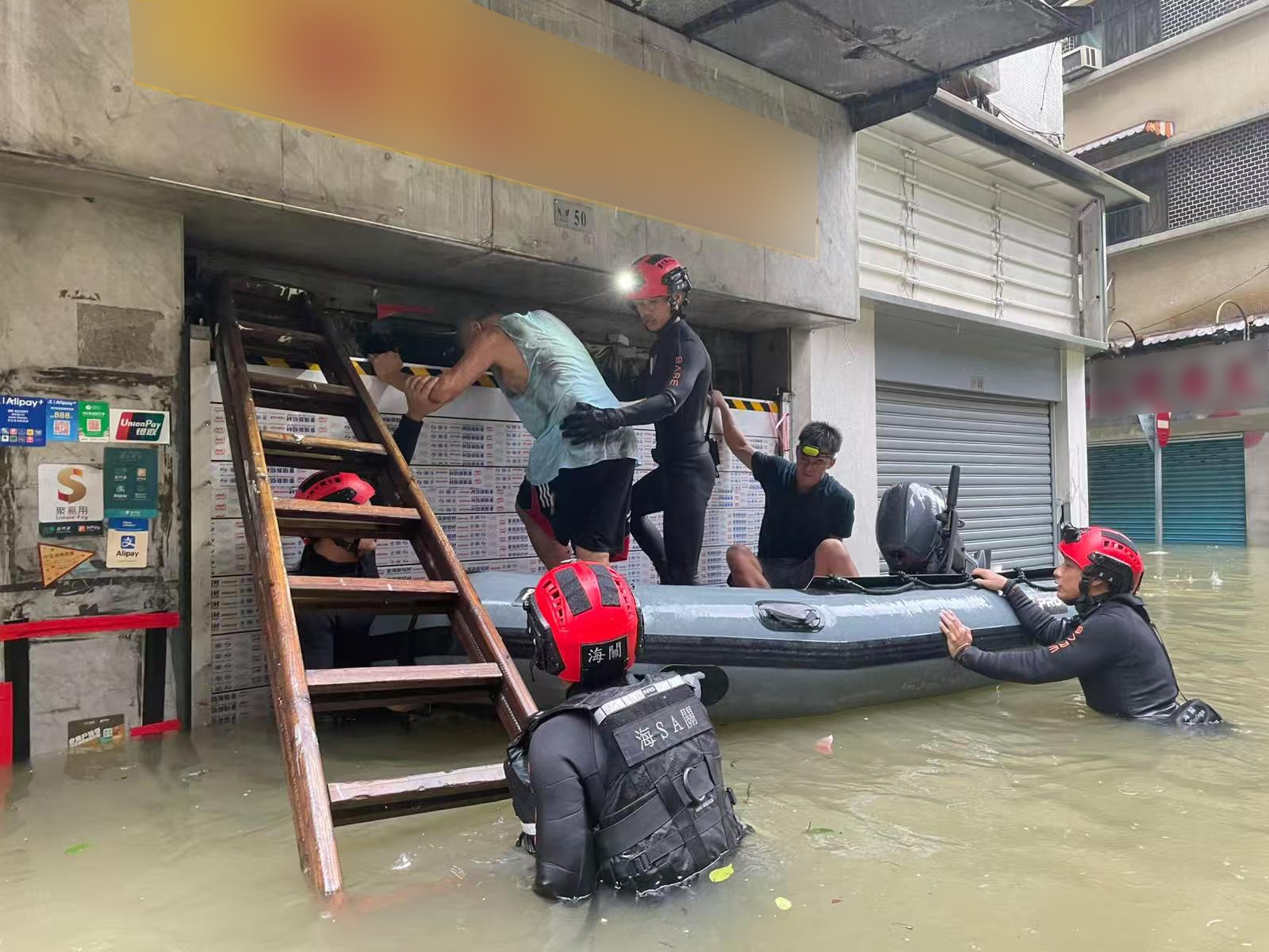 澳門海關人員拯救受水浸威脅的市民到達安全地點