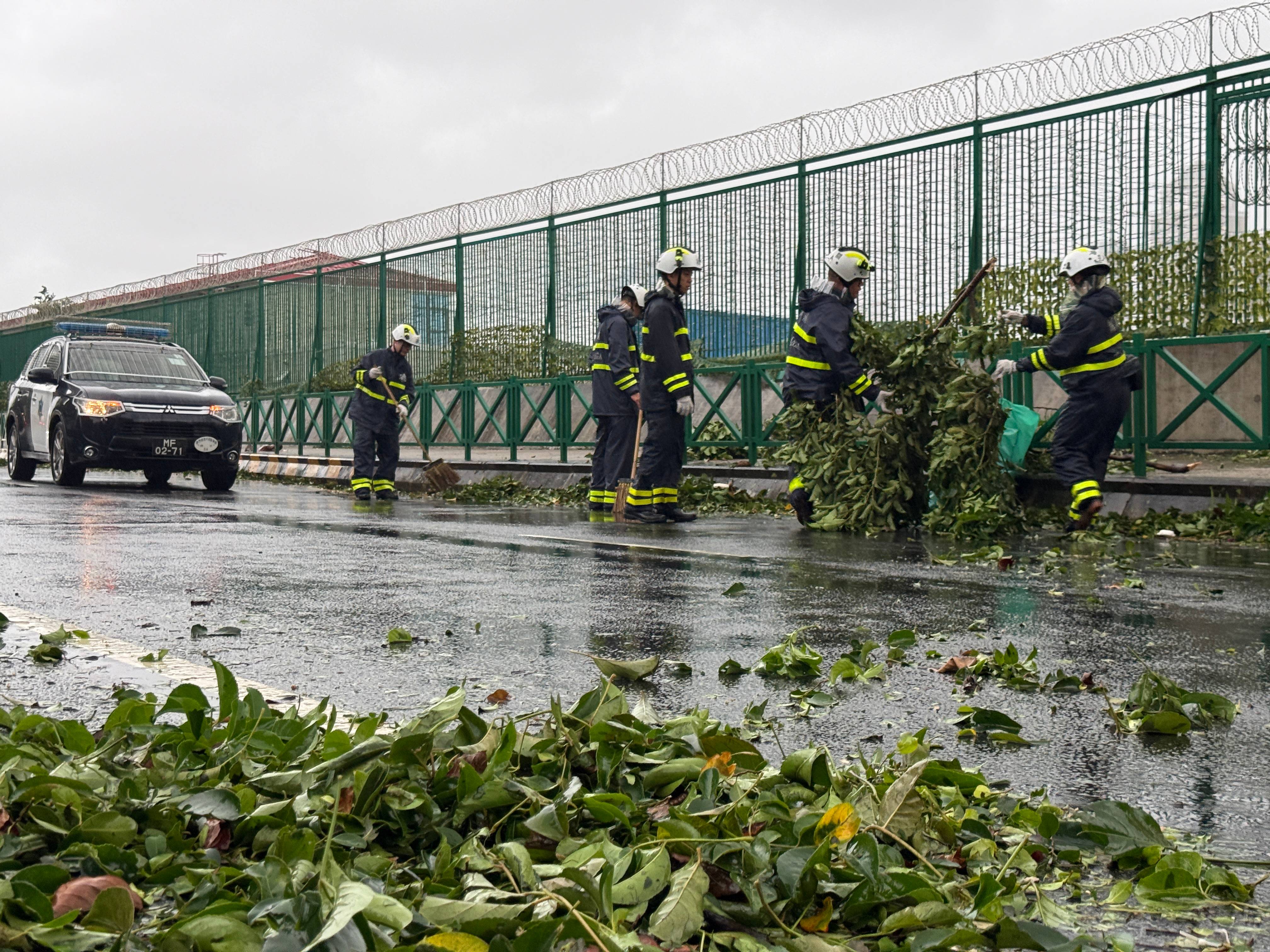 保安部隊及保安部門人員於風後進行清障工作