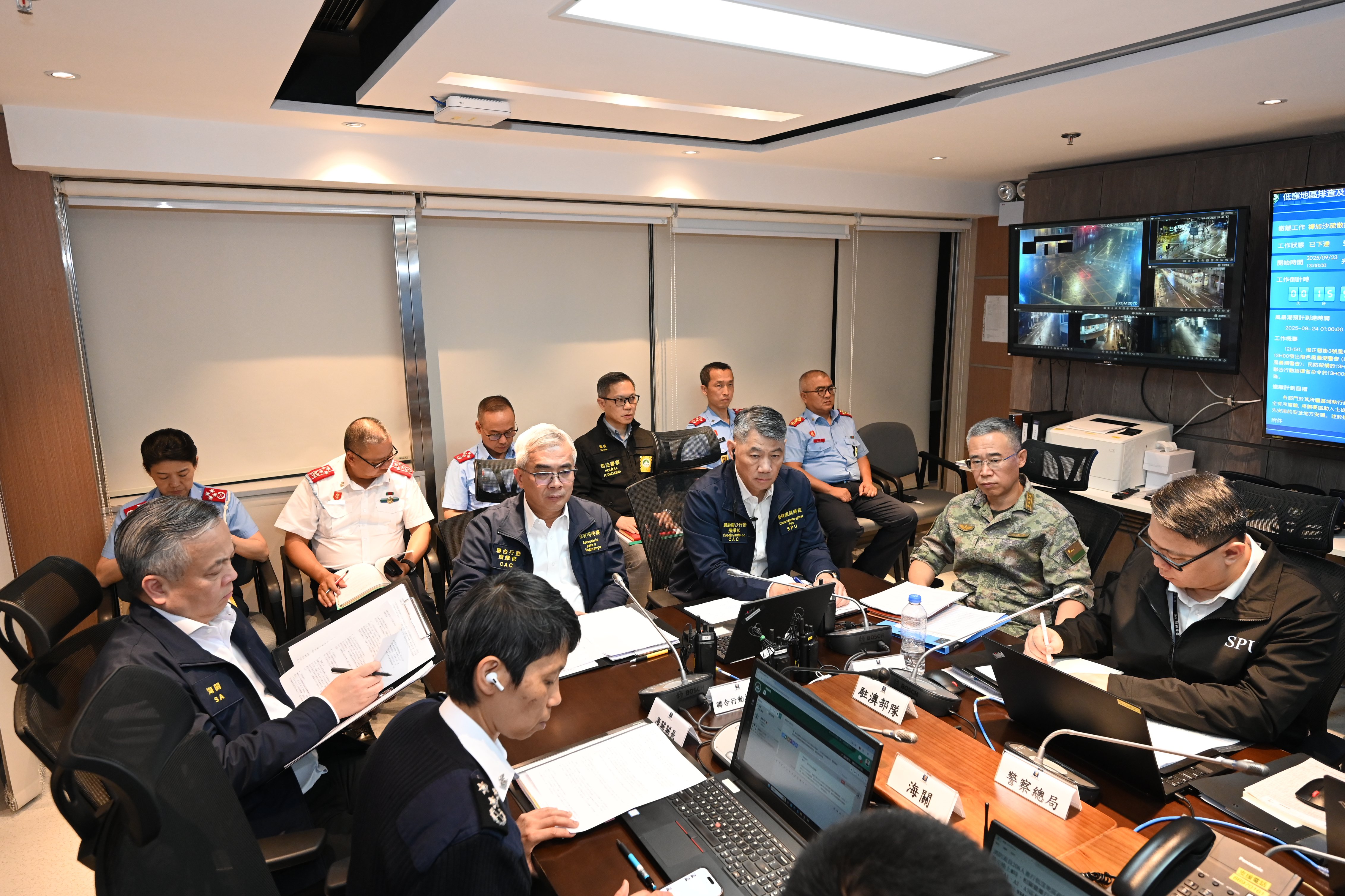 保安司司長、聯合行動指揮官黃少澤在民防行動中心聽取工作部署並作出指示