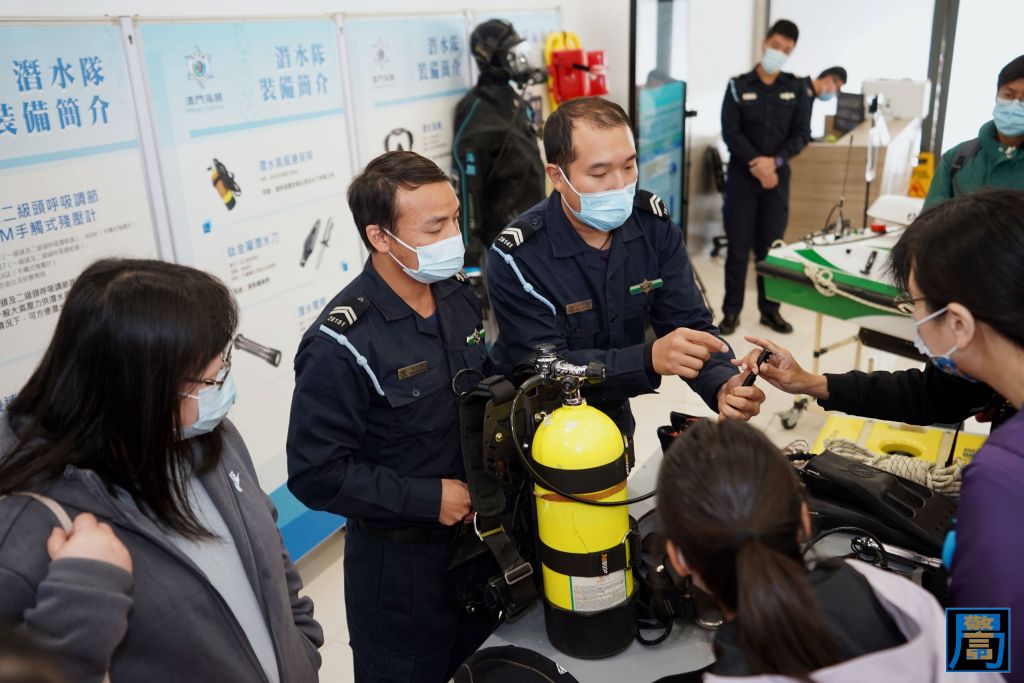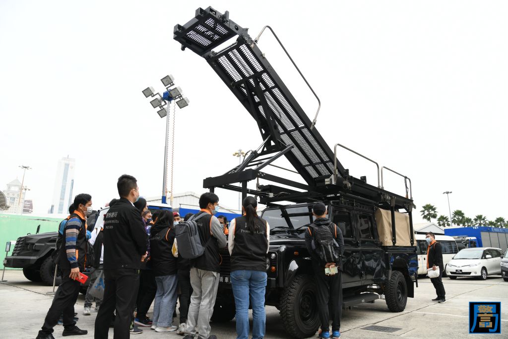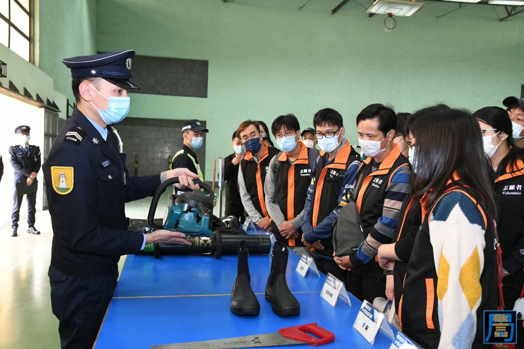 12月7日,19名“民防志願者”前往治安警察局特警大樓參觀民防救災裝備展覽。期間首先聽取治安警察局代表簡介局方的民防工作,隨後前往參觀裝備展覧,展覧包括運輸裝備、救援裝備、應急裝備、船隻、無人機等多項裝備。透過是次參觀活動,有效加深“民防志願者”對澳門民防體系及治安警察局民防工作情況的了解,增強防災抗災的知識和能力,進一步認識民防工作的重要性。
