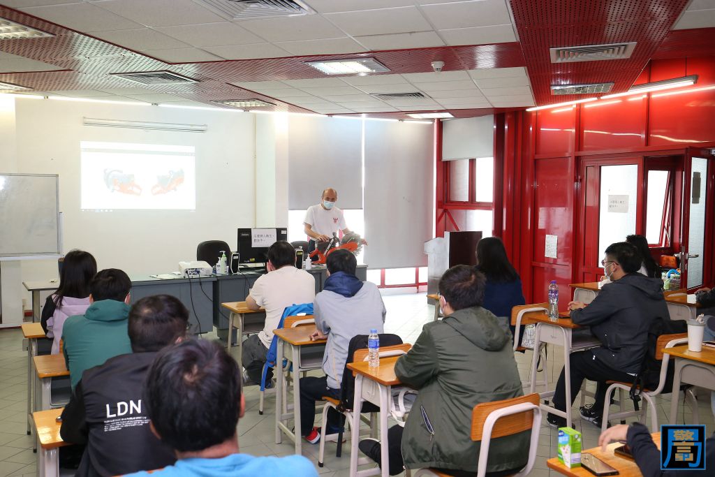 12月11日,消防局在消防學校為“民防志願者”舉辦清障工具(鋸具)認識的培訓課程,首先由消防局人員詳細講解各種切割工具,包括鏈鋸、手鋸及摩打鋸的簡介及操作方法,以及在使用上述工具處理樹木倒塌時需候注意的安全事項等;隨後,輔導志願者進行實踐操作,親身嘗試使用各種鋸具及鋸斷木頭,期間消防局局人員細心指導學員各種操作技巧,分享操作經驗,讓“民防志願者”掌握鋸具的正確使用方法,以及對颱風災後的使用工具有更深入認識,為民防架構成員增添多一份支援力量。