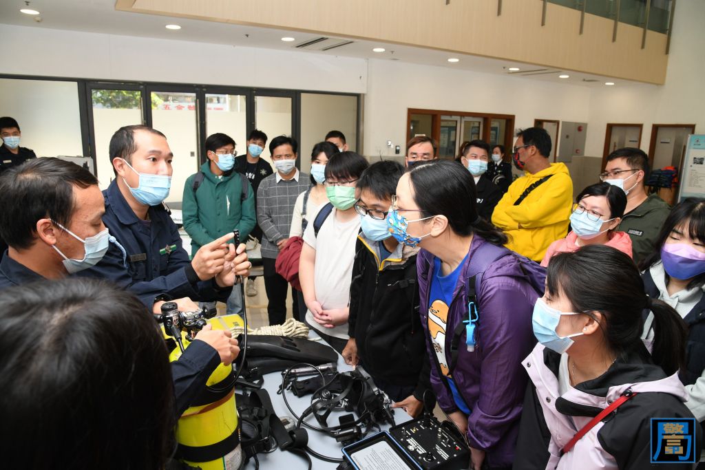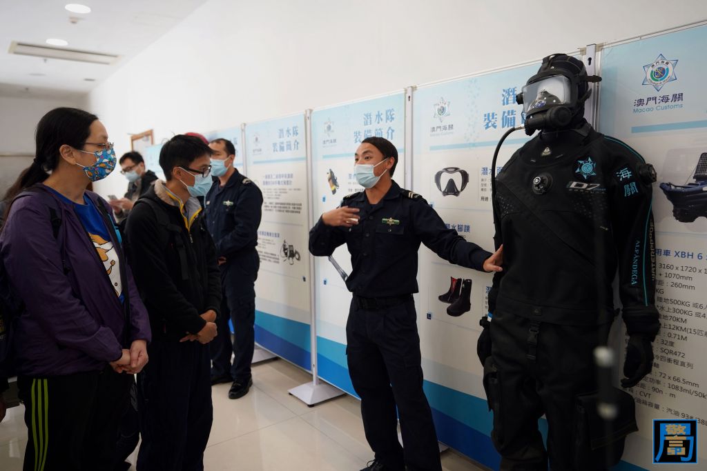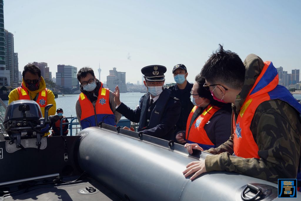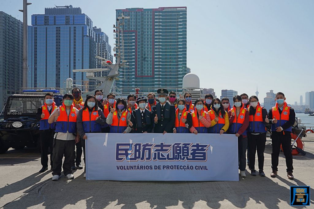 12月2日,“民防志願者”一行18人參觀澳門海關船隊,期間,海關代表向志願者介紹海上執法及民防工作,以及展示和講解在民防工作中使用的防災及救援裝備,藉此提高志願者的民防知識及專業技能;其後,在澳門海關人員的帶領下登上巡邏船出航了解澳門管理海域的狀況,並從中向民防志願者分享工作經驗,以及簡介船上的各類科技設備在工作中的應用情況。