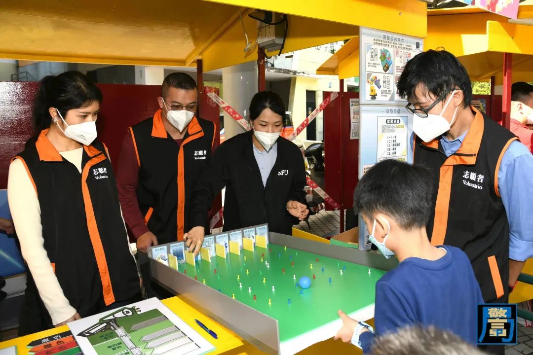 民防志願者透過攤位遊戲,以輕鬆互動的方式向市民宣傳民防資訊