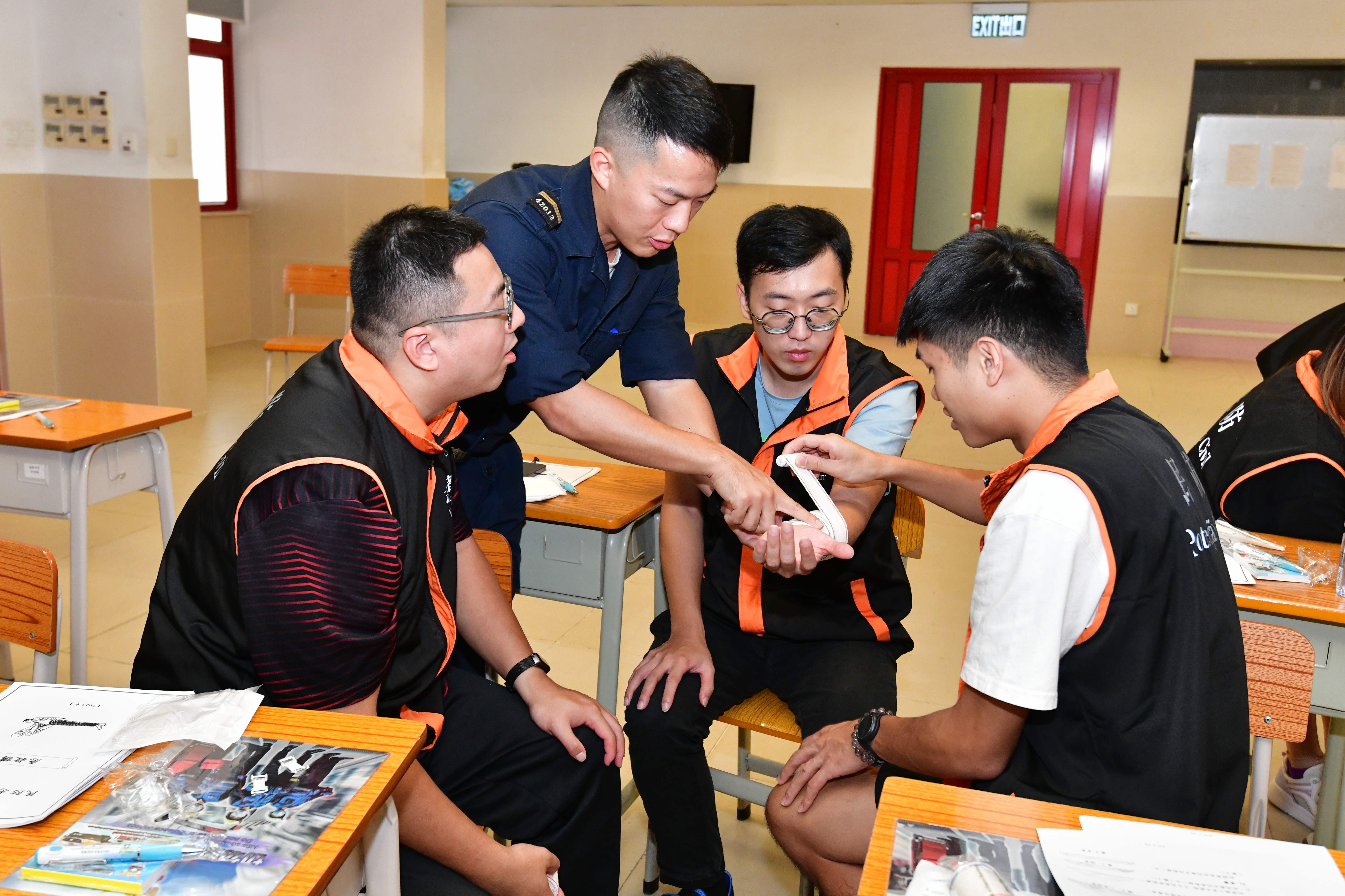 7月27日及8月5日,消防局分別舉辦了兩場“急救知識”課程,讓民防志願者認識實用的日常急救知識。課程上,消防局人員向民防志願者介紹救護工作的注意事項,介紹急救的基本知識,當中包括哽塞處理、傷口的初步處理以及各種包紮方法,認識自動體外心臟除顫器(AED)及心肺復甦法,期間消防局人員細心指導學員各種技巧,分享經驗,藉此提升民防志願者的急救知識及實務操作的基礎技能,以便日後更好地輔助及支援民防工作。