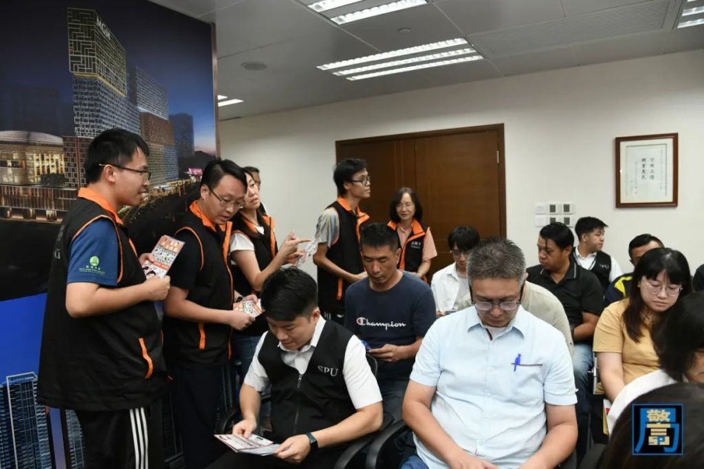於9月25日,警察總局帶領民防志願者前往澳門工會聯合總會進行“社區民防聯絡機制”專場培訓,出席的嘉賓及參與培訓人員包括:澳門工會聯合總會李從正理事長及一眾骨幹成員。期間,民防志願者協助推廣民防資訊,強化社區聯動力量。與此同時,警察總局帶領民防志願者於澳門十月初五街一帶進行民防宣傳活動,期間到附近商戶及市民派發宣傳單張,講解防災避險知識,並提醒市民提早做好防風措施。